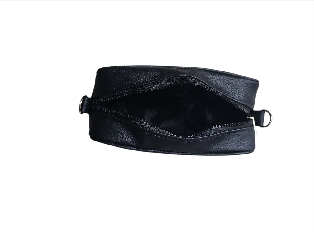 descripcion: bandolera con cierre diente perro con bolcillo ,forrado por dentro ,tira regulable