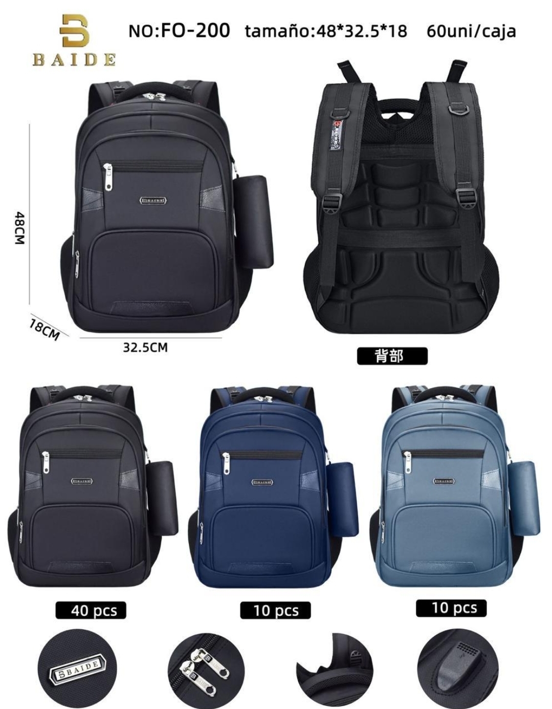 Descripcion : mochila importada espaldar reforzado ,cierres reforzados ,accesorios de usb y auricular